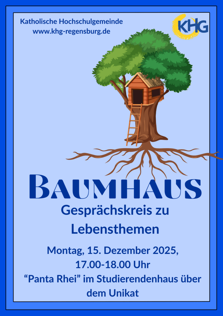 Willkommen im Baumhaus – deinem Rückzugsort für inspirierende Gespräche! Der Gesprächskreis im Panta Rhei (über der Unipizzeria) ist offen, d.h. du kannst zu allen Terminen ohne Anmeldung dazu kommen. Natürlich gibt es immer Kaffee, Tee und Kekse! Heute dreht sich alles um das Thema „Familienkonflikt an Weihnachten – dieses Mal ohne mich!“
