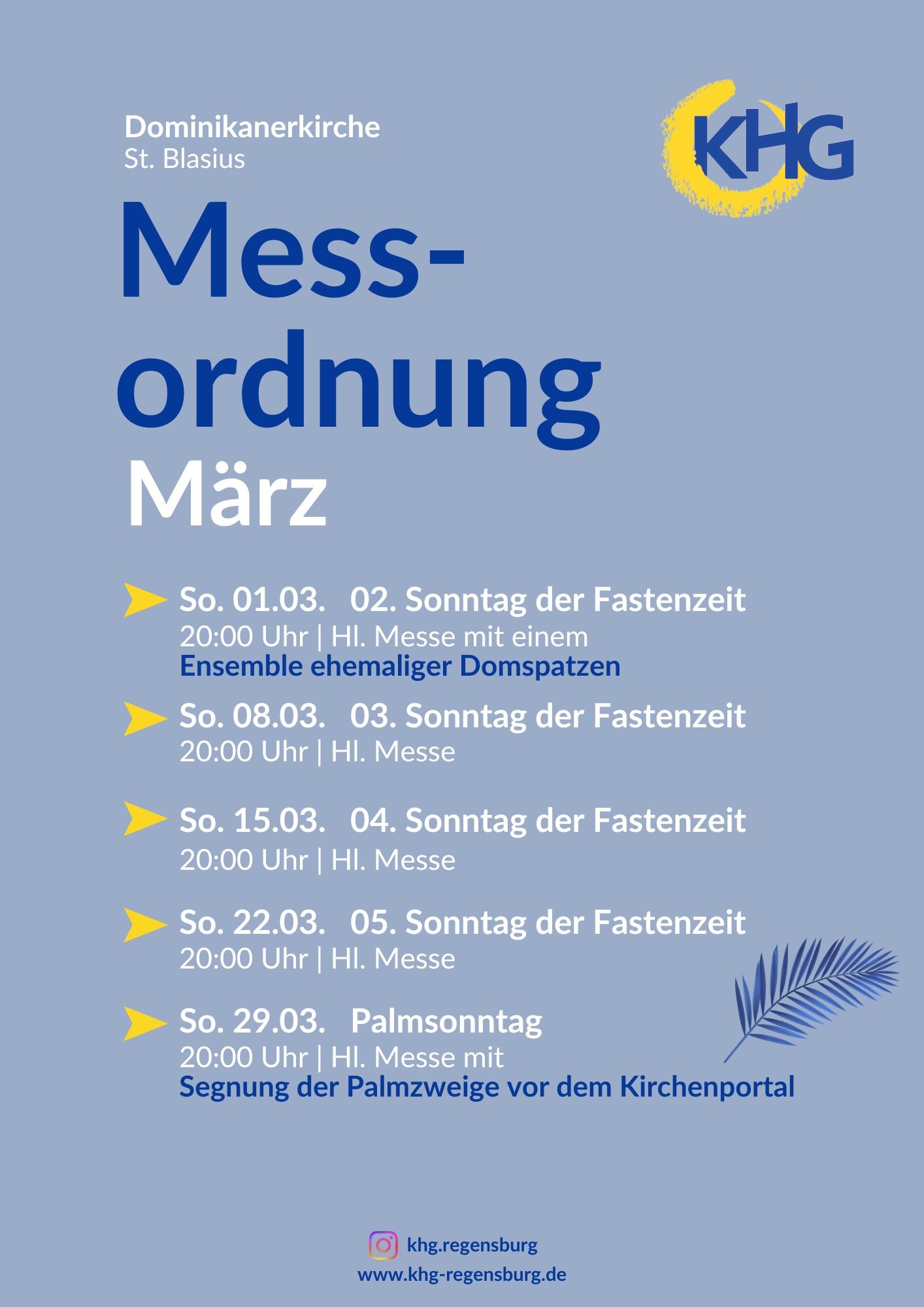 Umkehren, Gott neu suchen, im Glauben wachsen: Gehe mit der Katholischen Hochschulgemeinde durch die Fastenzeit und feiere mit uns die Hl. Messe an den Sonntagen der Quadragesima in der Dominikanerkirche St. Blasius.